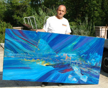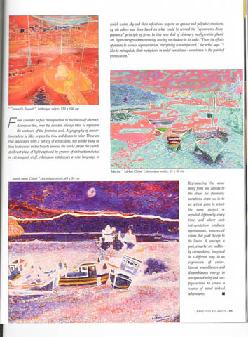 Little by little its work is transposed of the free figuration or landscapes abstracted in vibrating symphonies by the play from the light collected by the furrows from painting so that at every moment the spectator can be delighted by a new vision of the fabric, a new reflection, a new prospect, a new escape where the conduit with subtlety its unconscious. |