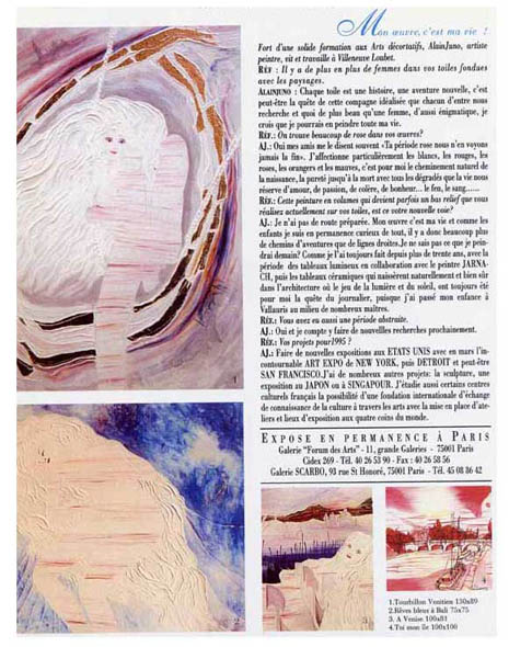 - The landscapes break, tangle up, only a “wire of ARIANE which passes from fabric in fabric” remains the bond of its works. Resumption of the public exposures with mainly: - Living room of PARIS Autumn - (FRANCE) |